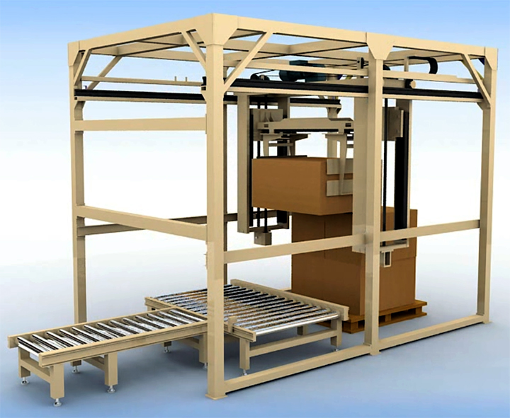主要特點:l主要功能:配合托盤輸送設備可實現自動上盤碼垛功能l生產能力:80箱/小時(200kg/箱)l可實現單箱4層碼...