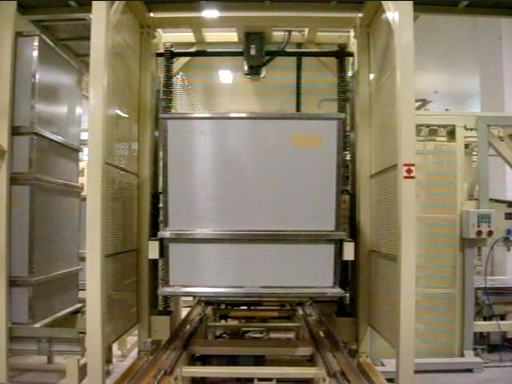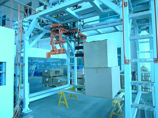 周轉(zhuǎn)箱碼分機(jī)1.主要功能周轉(zhuǎn)箱碼分機(jī)是一種用于煙絲箱式存儲自動化物流系統(tǒng)中,完成兩個煙絲箱的疊箱或者分箱操作的設(shè)備。2....